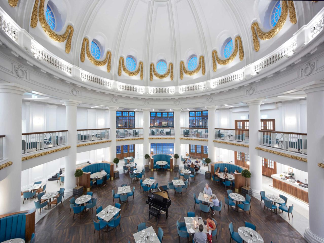 Spanish City pleasure dome, a Grade II listed building which has been completely transformed and restored in 2018. It features an incredible domed ceiling in a rotunda, with a large open space and a circular balcony plus three restaurant areas elsewhere in the building – all fitted with Junckers’ Black Oak floor.