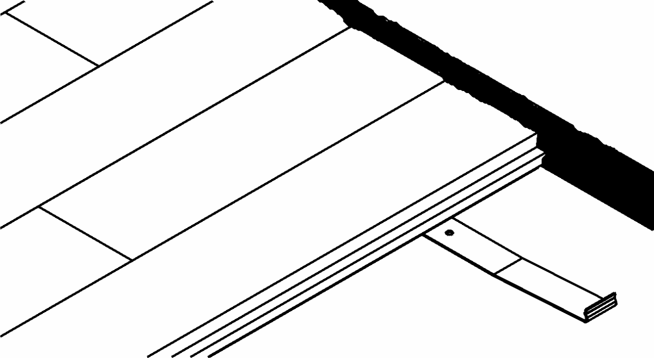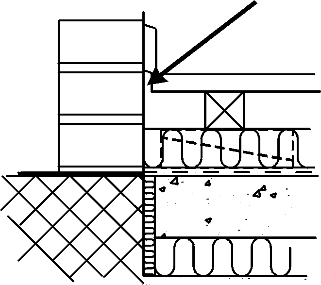 Ensure that the subfloors corners and edges along walls are clean and appear sharp, and that they are free from concrete and plaster residue, so that the Junckers floor can expand freely without contact between abutment and subfloor or walls, see fig. 1.