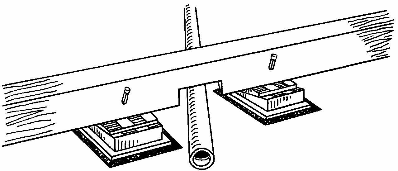Packings/wedges must be close to cuts in the battens on both sides, see Fig. 4. There must be a minimum clearance of 10 mm between the lower surface of the board and batten and the pipe insulation to avoid sound bridges.