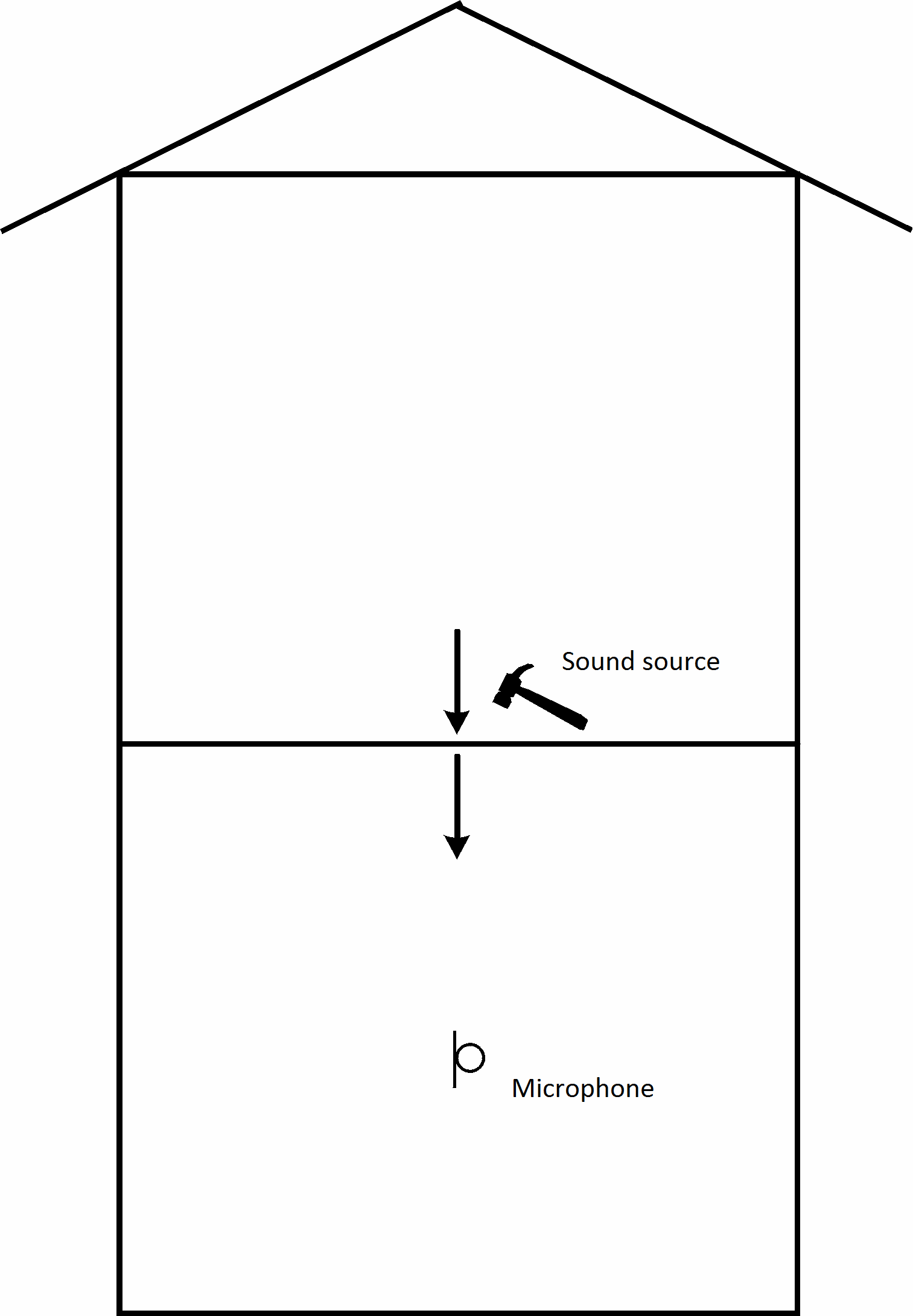Drum sound indicates the special type of step sound radiated in the same room from which the sound originates. Drum sound is for example common in long corridors where much noise can occur, see Fig. 8.