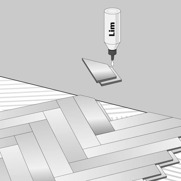 When the adhesive in the starting row is dry, you can continue laying the floor.