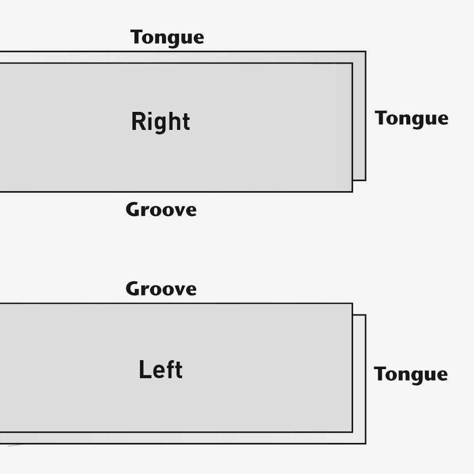 The pattern blocks are delivered with groove on all sides. Loose tongues are used on sides where the blocks abut the groove side of the staves.