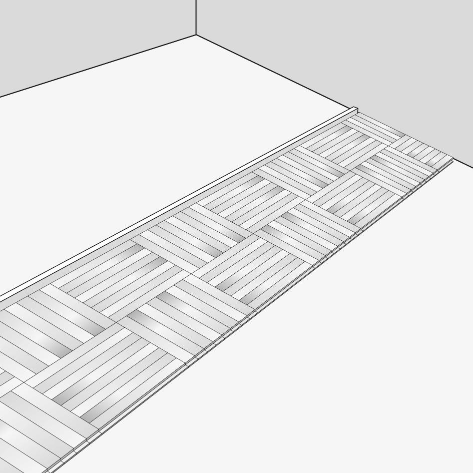 The floor can be laid at an angle of either 90° or 45° in the room (lines A and B, respectively).