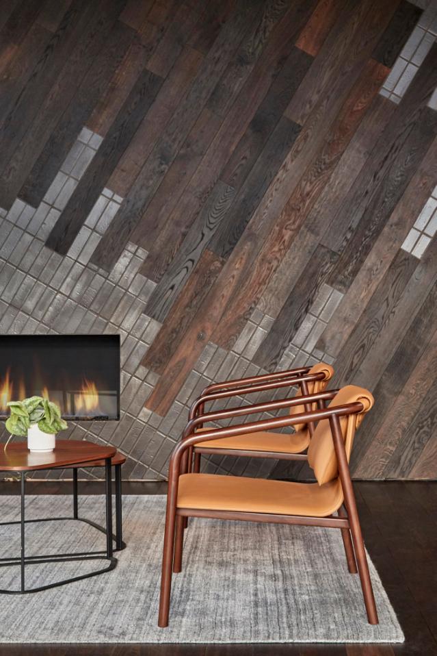8th floor – Volcano crater featuring Junckers Black Oak Harmony plank flooring + Textured Black Oak Variation as wall panelling