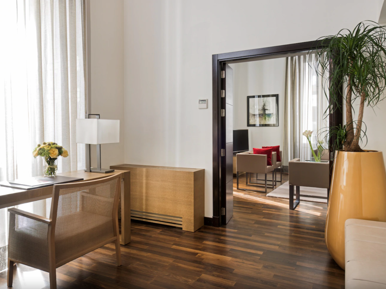Dark wooden floors add elegance to luxury hotel